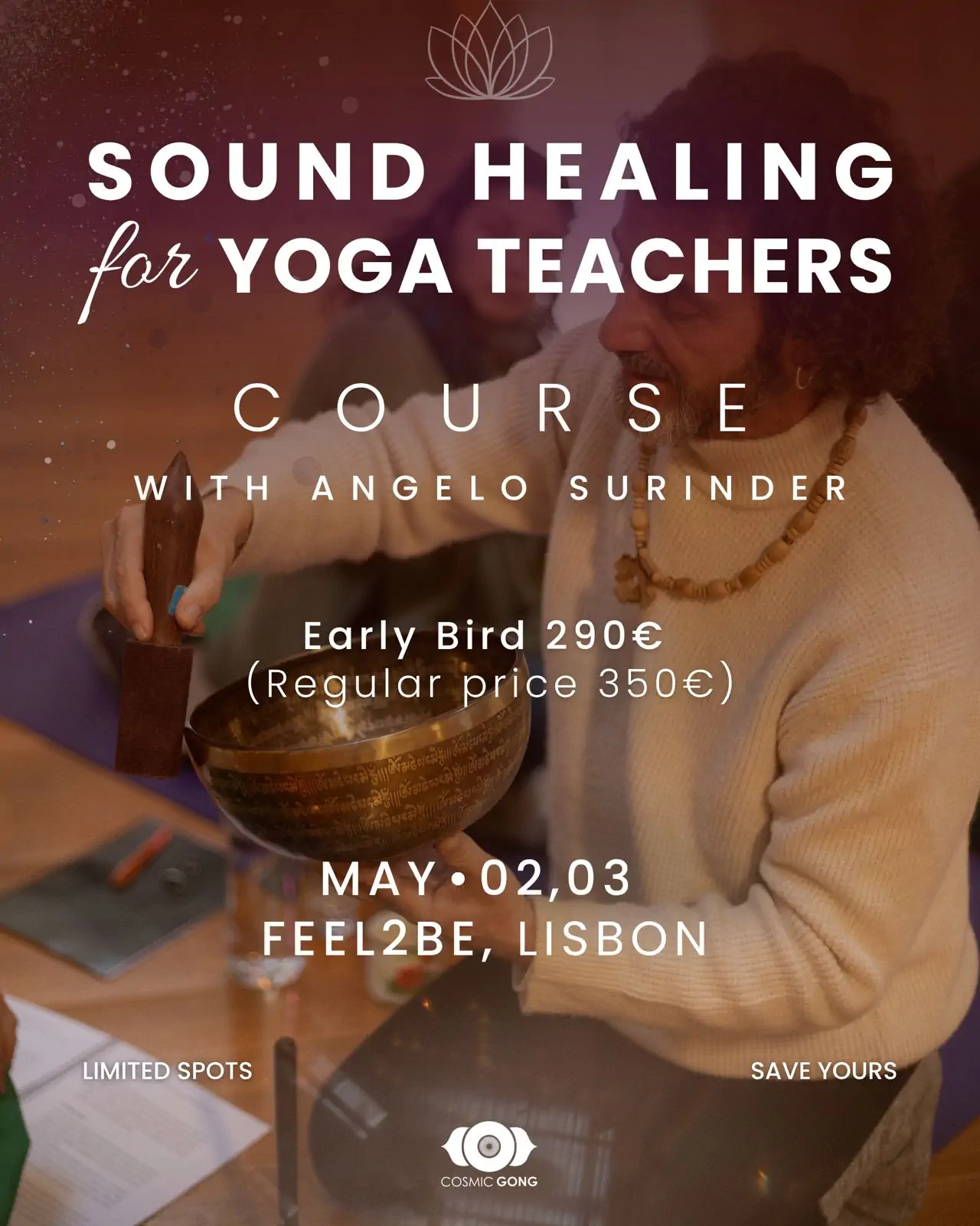The student will be able to take courses in Gong, Tibetan Bowls and Sound Healing, according to the Cosmic Gong Method.